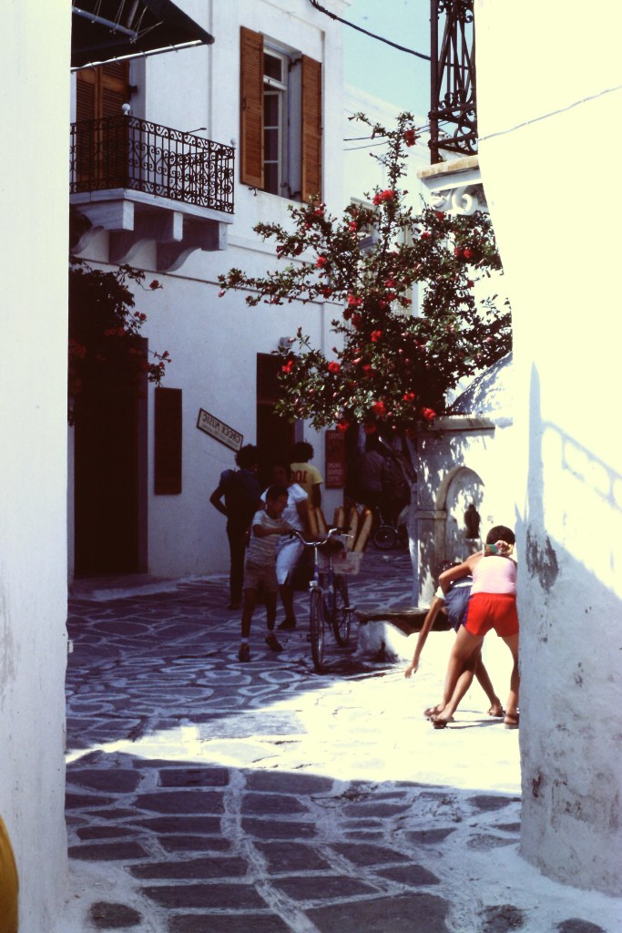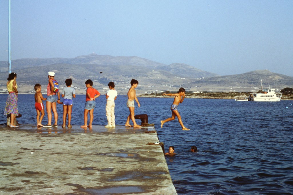 Η πρώτη φορά στην Αντίπαρο ήταν τη δεκαετίας του ‘60, κάθε καλοκαίρι σχεδόν, στις διακοπές του σχολείου. Ότι βλέπεις σήμερα, τότε ήταν επιστημονική φαντασία. Χωρίς ηλεκτρικό ρεύμα, χωρίς αυτοκίνητα, χωρίς φέρι μποτ, με ένα υπαίθριο κινηματογράφο είτε σε αυλή είτε σε κάποια ταράτσα πριν το μόνιμο χώρο του Cine Oliaros, με δύο τρία καφενεία, ξύλινα καΐκια και βάρκες στο μικρό λιμάνι. Ελάχιστοι επισκέπτες, οι περισσότεροι Έλληνες οικογενειάρχες, η Μανταλένα κι ο Ανάργυρος για πιο απαιτητικούς ταξιδιώτες , κάποια ολόλευκα πεντακάθαρα δωμάτια για τους υπόλοιπους. Το πλέον χαρακτηριστικό τότε, που δεν συνάντησα ποτέ ξανά, ήταν μια απέραντη γαλήνη και ησυχία που επικρατούσε στο ψαροχώρι. Κάποιες στιγμές η μηχανή ενός πλεούμενου ή σπανίως κάποιος ντελάλης έδειχναν σημάδια κίνησης και ζωής. Ποιότητα ζωής και χαλαροί ρυθμοί, που δεν μου άρεσαν, ούτε μπορούσα τότε να κατανοήσω. Τις δεκαετίες 1980 και 1990 όλα αυτά ήταν ήδη μακρινό παρελθόν. Το καφενείο στην πλατεία μεγάλωσε, ο Σιφνέικος απέκτησε παγκάκια, μικρά ξενοδοχεία και πολλά ενοικιαζόμενα δωμάτια εμφανίσθηκαν ξαφνικά, οι ντίσκο Μύλος και La Louna ήταν σημεία συνάντησης και διασκέδασης για έφηβους, μικρότερους ή μεγαλύτερους. Στα 5φ αργά μετά τα μεσάνυχτα για σουβλάκι γύρο οι περισσότεροι και κατοπιν μια βολτίτσα στην παραλία πριν τον ύπνο. Έπαιρναν μοναδική ενέργεια απ το νησί και τη χάριζαν απλόχερα. Αυτή είναι η δύναμη της Αντίπαρου διαχρονικά.